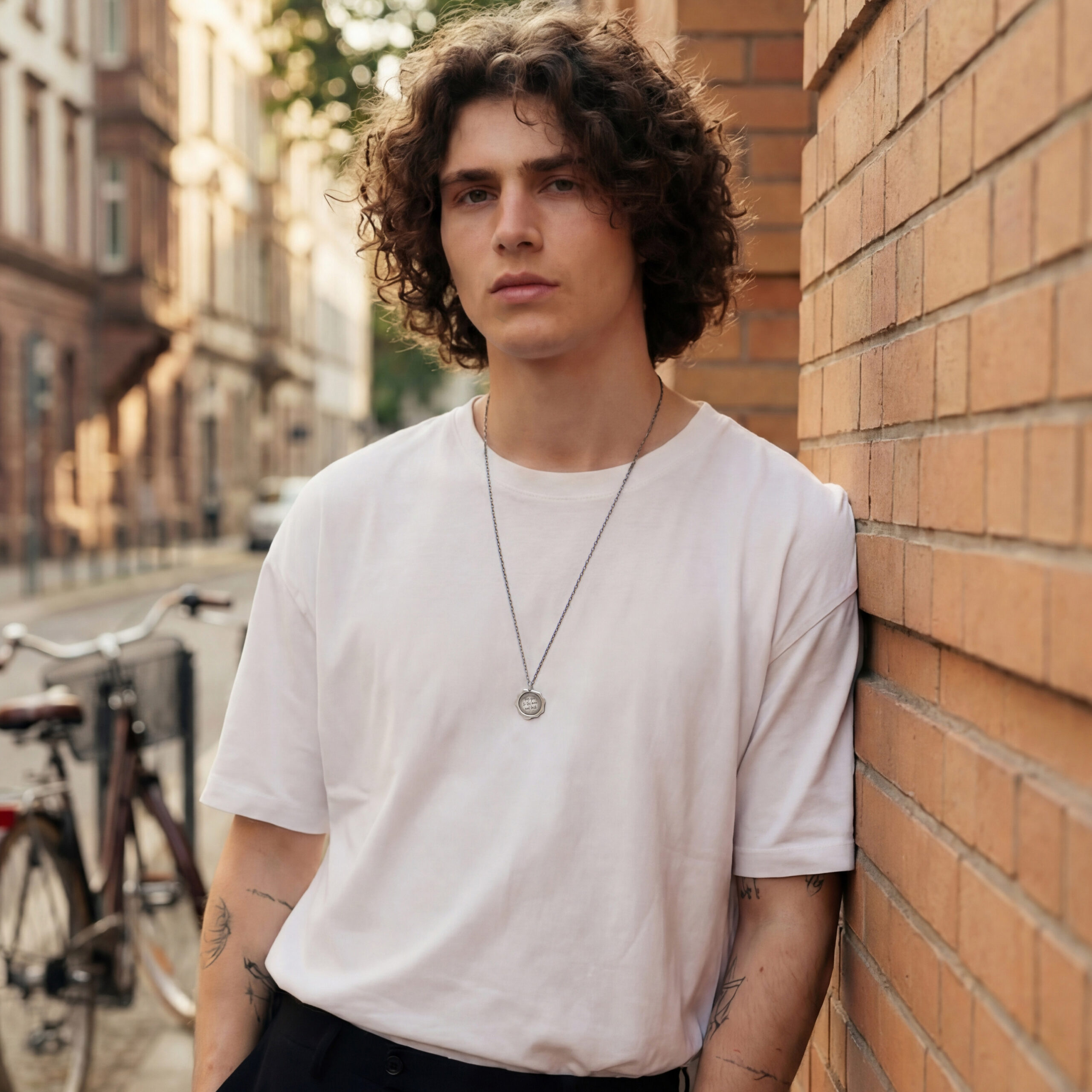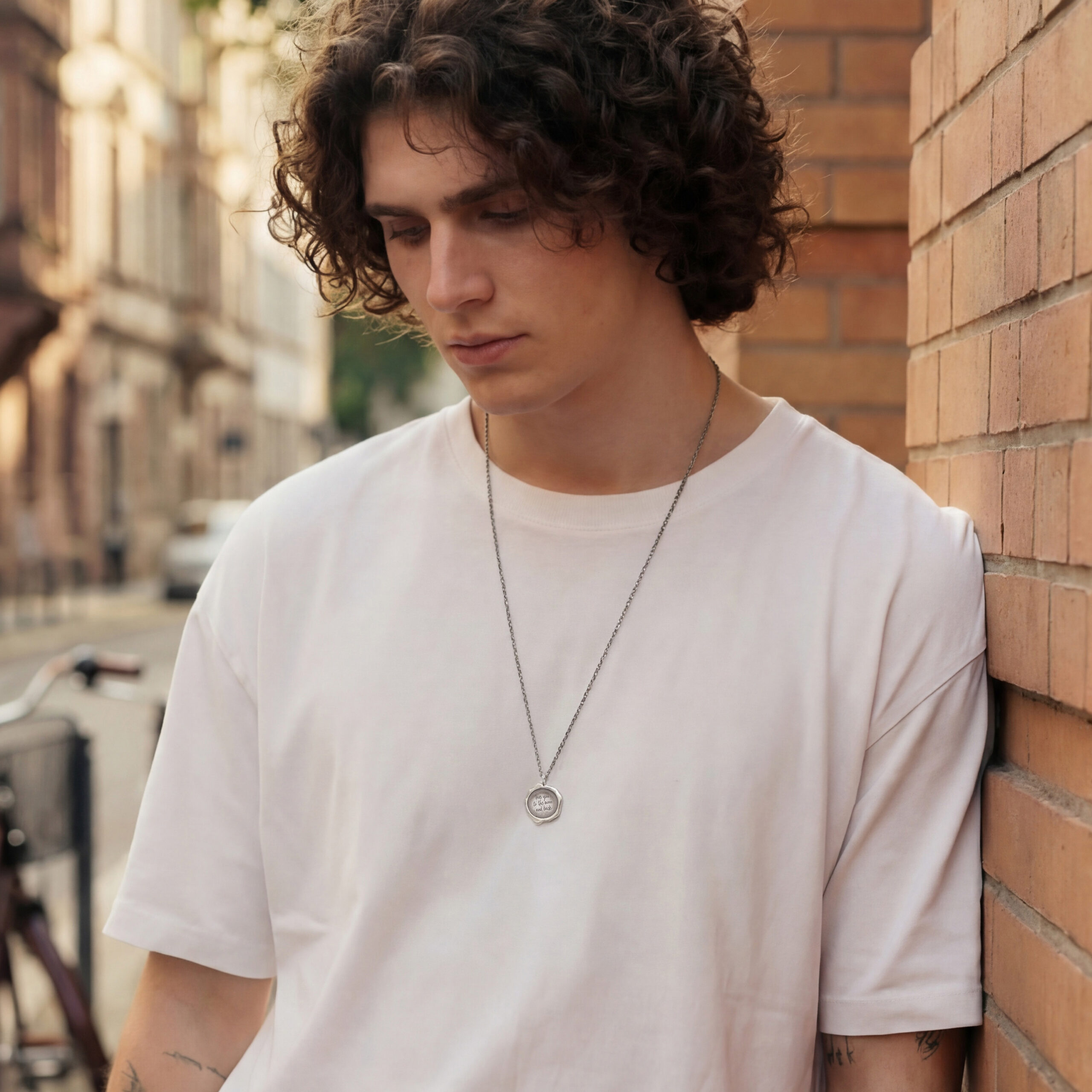 The pendant is available with a solid silver chain 70cm or 80cm long (approx. 27.55in or 31.49in). It is a cable chain 2mm thick (approx. 0.08in). The lengths are fixed.