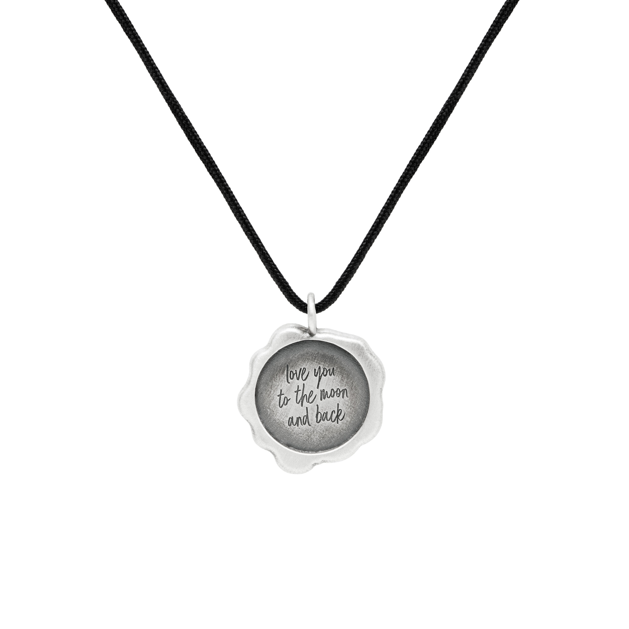 The pendant is available with a black waxed cotton cord. It is 1.5mm thick (approx. 0.06in). The cord can be easily adjusted from 50cm to 100cm total length (approx. 19.68 into 39.37in).